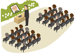 | 一般葬 | 友人、会社、近所の方など参列者を制限せずに集う従来型の葬儀。お世話になった人に最後の挨拶をしてもらえ、社会的なけじめがつく。参列者への挨拶やお礼などで慌しく時が過ぎ、ゆっくりと別れの時間を取れなかったという声も。 | ![]() |